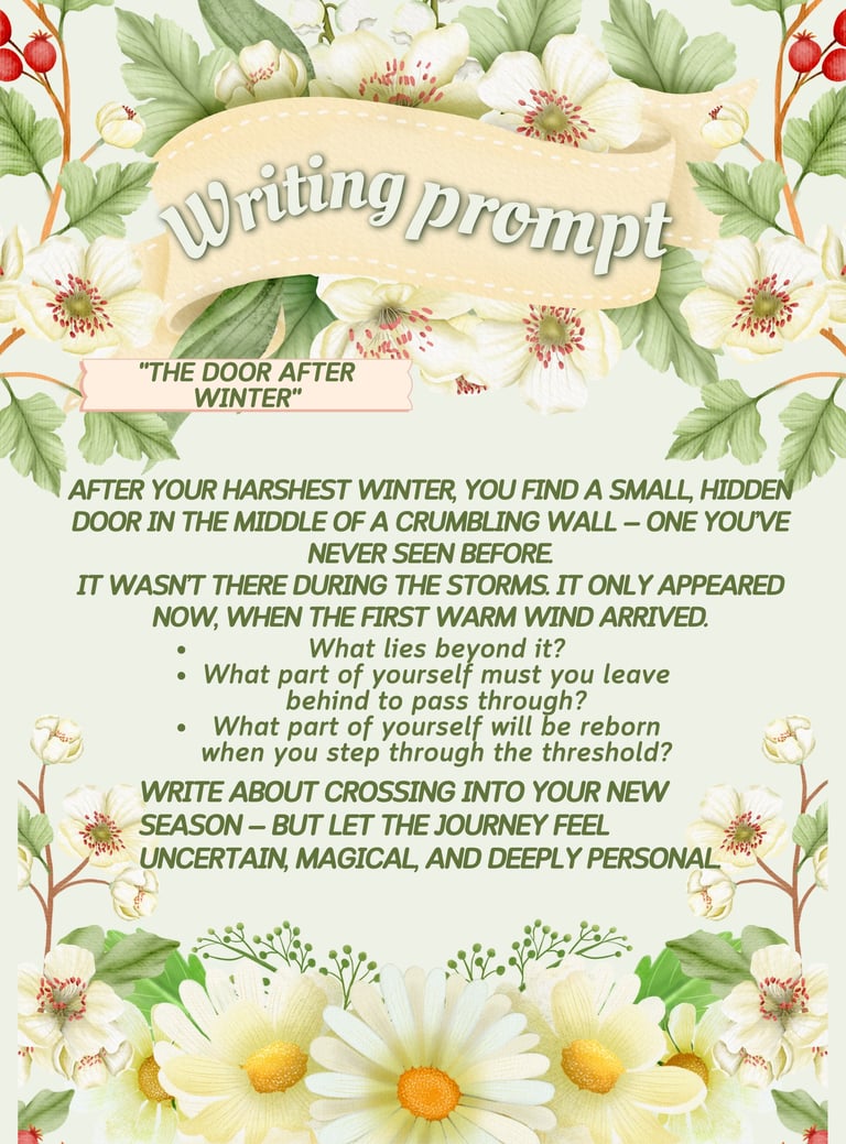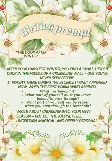 A gentle writing prompt about seasons of change and personal renewal. What would you leave behind… and what would bloom if you stepped through The Door After Winter?
